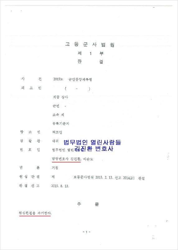 20년 이상 군생활 하신 간부 분이 항소심을 의뢰하실 경우 일을 하는 저로서도 큰 부담감과 책임감을 느낄 수밖에 없습니다. 사실상 연금을 지킬 수 있는 마지막 기회이기 때문입니다.