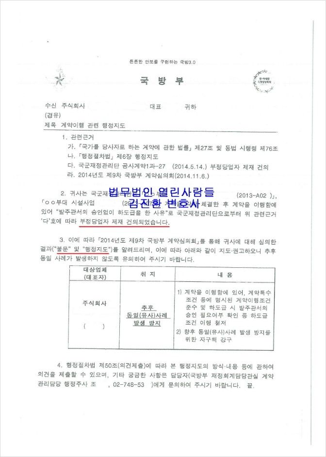 국방부 계약심의회는 군 내부에서 올라온 부정당업자 제재 건의를 최종적으로 심의하여 제재 처분을 내리는 기관으로서 아무래도 부정당업자 제재 건의로 올라온 사안을 그대로 확정하는 것이 일반적입니다.