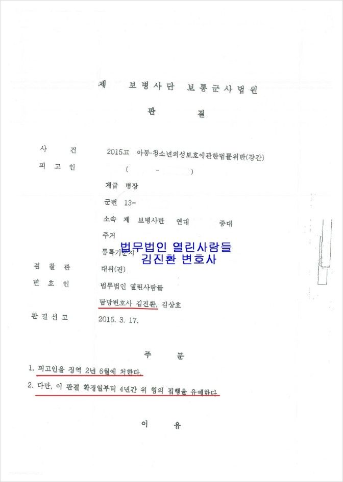 피고인은 재판 당시 이미 전역일이 지난 때였습니다. 그래서 판결 선고일에 바로 제대를 하여 가족들과 함께 집으로 돌아가게 되었고 검찰관께서도 항소를 하지 않아 판결이 그대로 확정되었습니다.