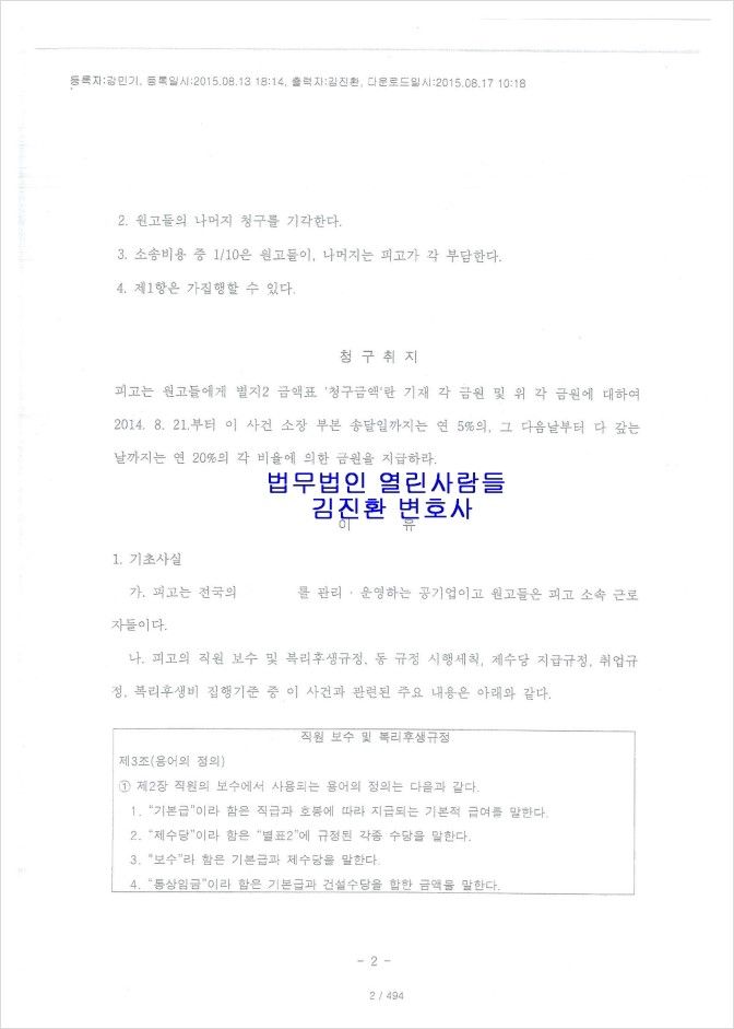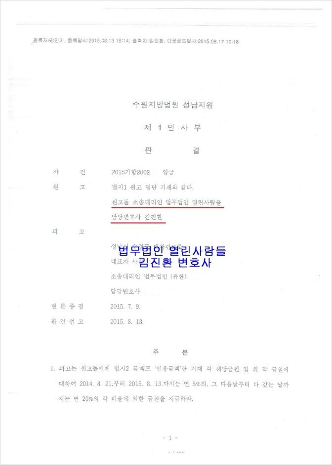 회사로서는 공기업의 특성상 협의에 의해 그 차액을 지급해 줄 수 없고 소송을 통해서만 가능하다고 하여 직원들이 제게 소송을 맡기게 되었습니다.