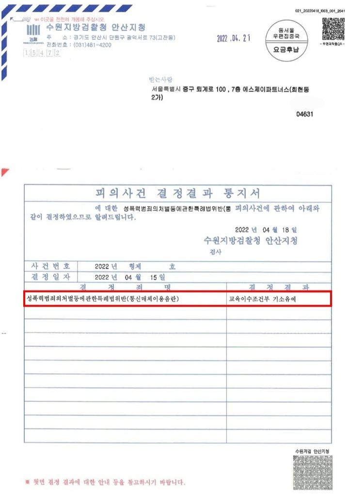 이러한 저의 조력을 바탕으로 A씨는 B씨와 합의하지 않고 혐의를 적극 다투었음에도 불구하고 '기소유예' 처분을 받음으로써 법적 불이익을 최소화하면서 성범죄 전과자가 될 위기에서 벗어날 수 있었습니다.