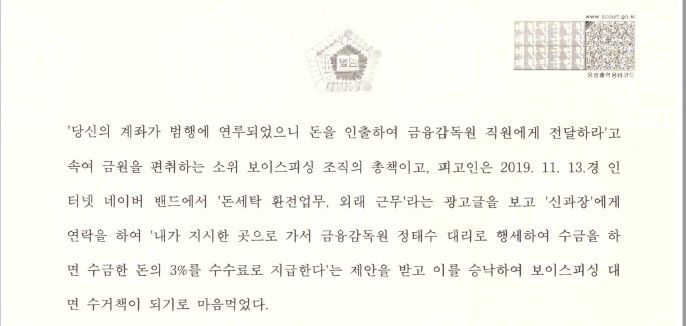 보이스피싱 인출책, 전달책, 수거책으로 구속된 상태