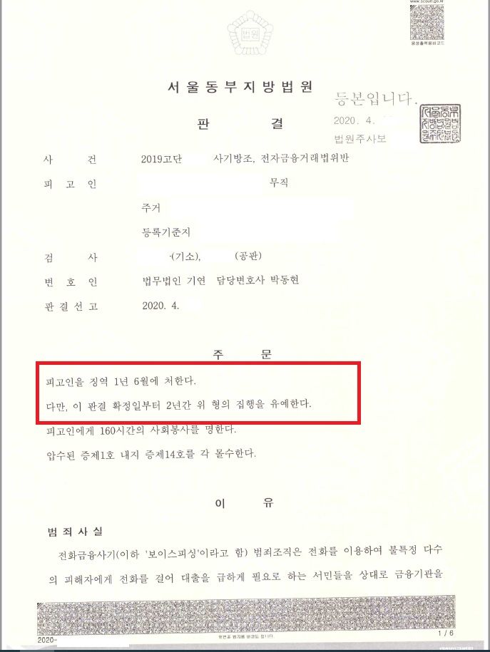 (보이스피싱 인출책, 전달책, 수거책- 집행유예)