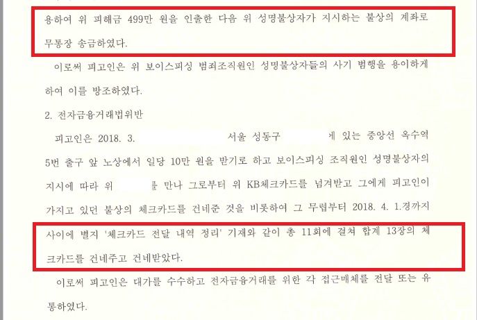보이스피싱 인출책, 전달책, 수거책으로 구속된 상태
