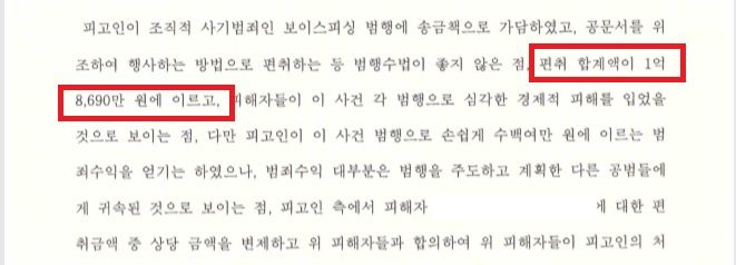 피해금액 1억 8,000만원 이상임에도