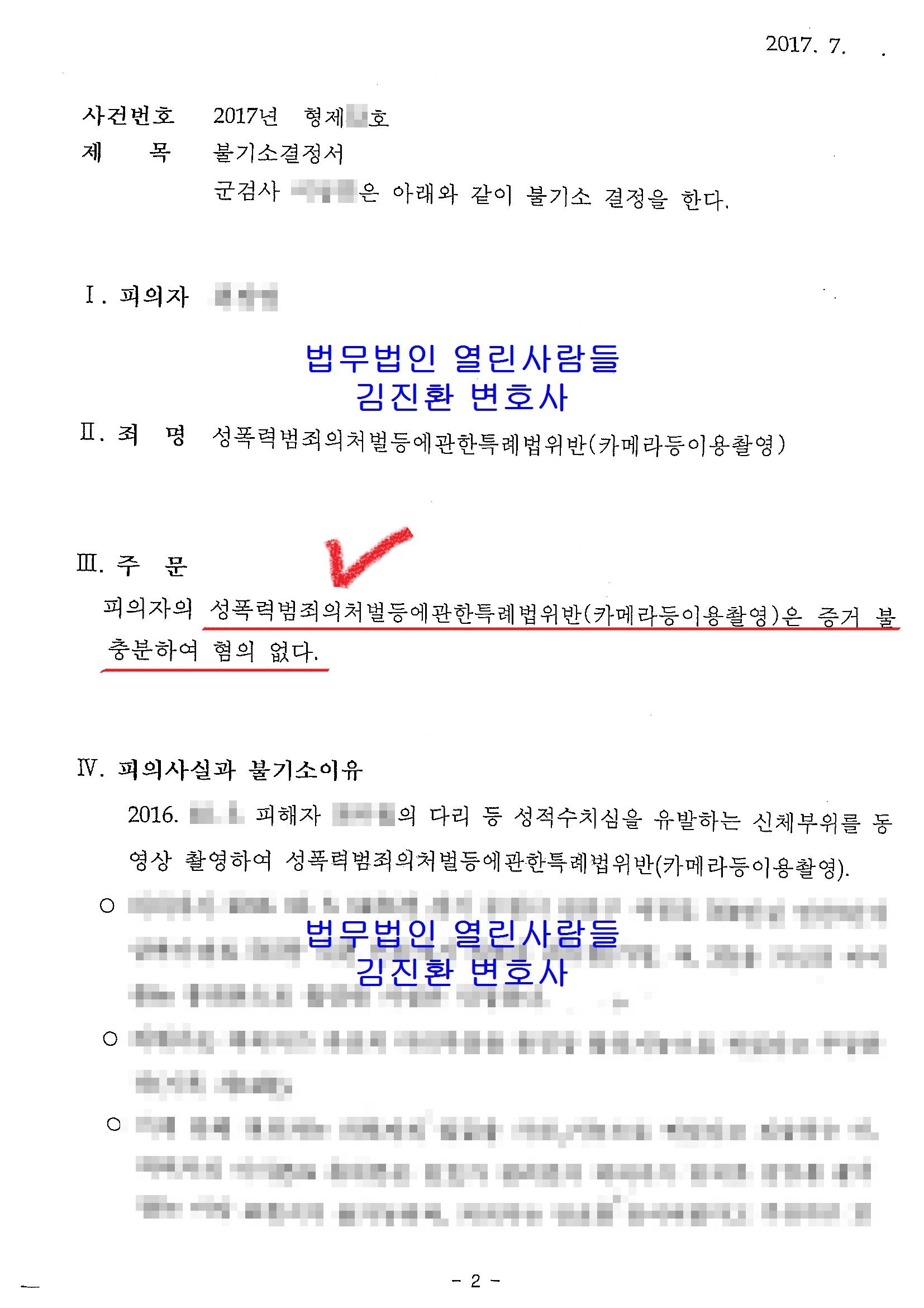 이렇듯 카메라이용촬영죄의 특성을 잘 알고 수사에 임한다면 곤란한 상황도 슬기롭게 대처하여 억울한 상황을 피할 수 있습니다.