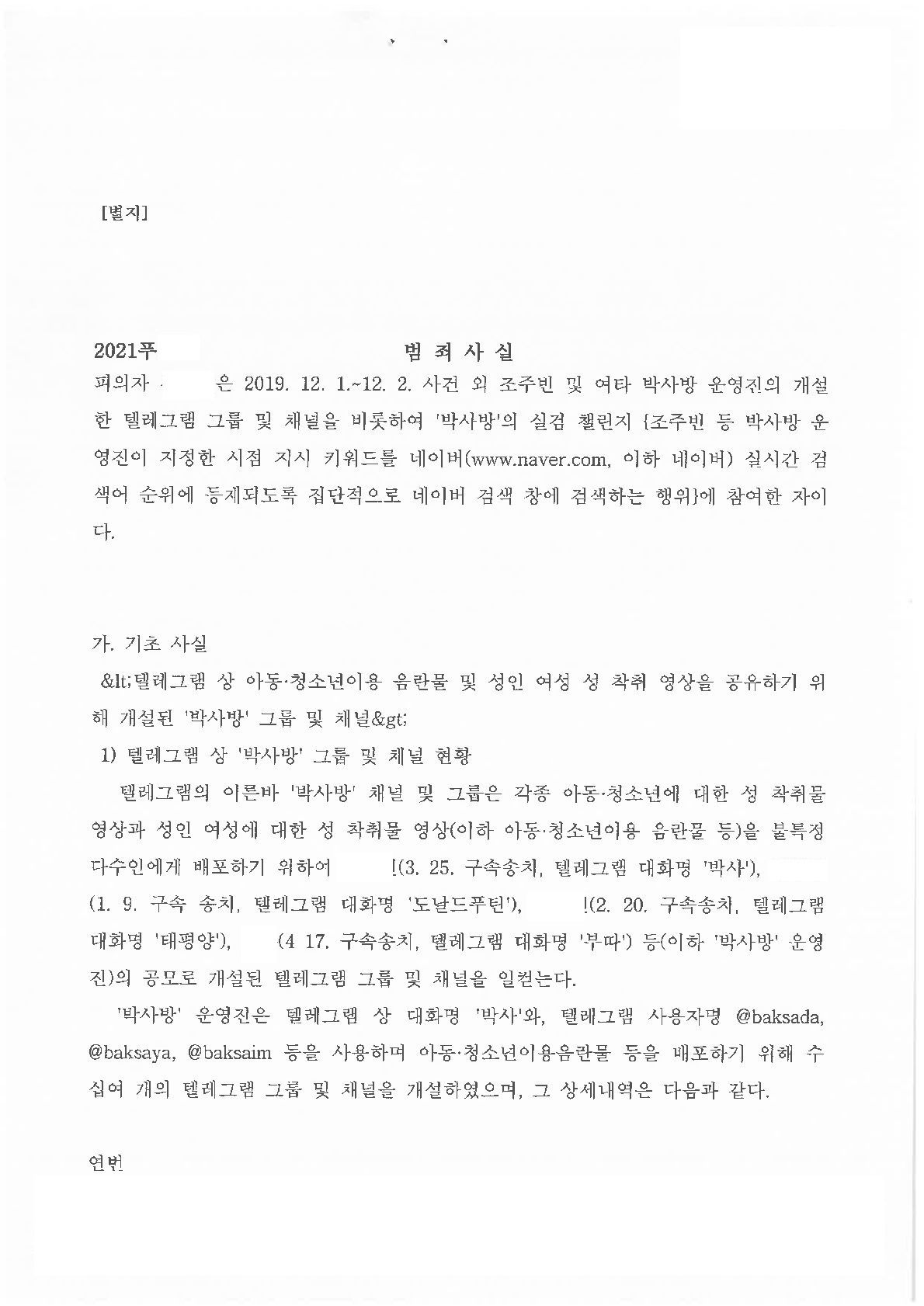 이 사건은 사회적으로 큰 파장을 일으켰던 박사방 사건과 관련하여, 박사방 운영자인 조주빈이 진행하였던 실검챌린지(박사 등 박사방 운영진이 지정한 시점에 지시한 키워드를 네이버 실시간 검색어 순위에 등재되도록 집단적으로 네이버 검색창에 검색어를 입력하는 행위)에서, 의뢰인이 텔레그램 그룹방에 들어가 조주빈 등 박사방 운영진의 지시를 받고 자신의 네이버 계정을 사용하여 네이버 검색창에 검색어를 입력하여 박사방 운영진의 아동청소년이용음란물 배포를 방조하였다는 것입니다.