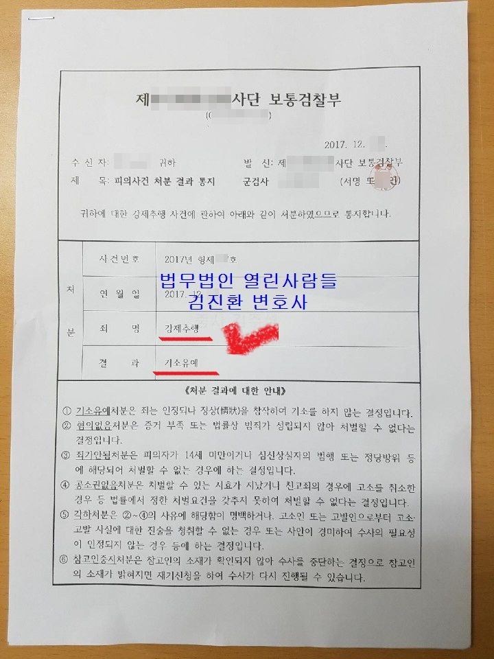 그 과정이 쉽지 않았고 합의가 힘들 것으로도 보였지만 검사님이 생각하신 결정일 바로 직전에 합의가 되어 기대하던 기소유예를 받을 수 있었습니다.