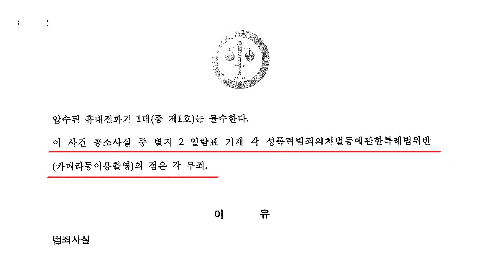 ● 죄명 : 성폭력범죄의처벌등에관한특례법위반(카메라등이용촬영)