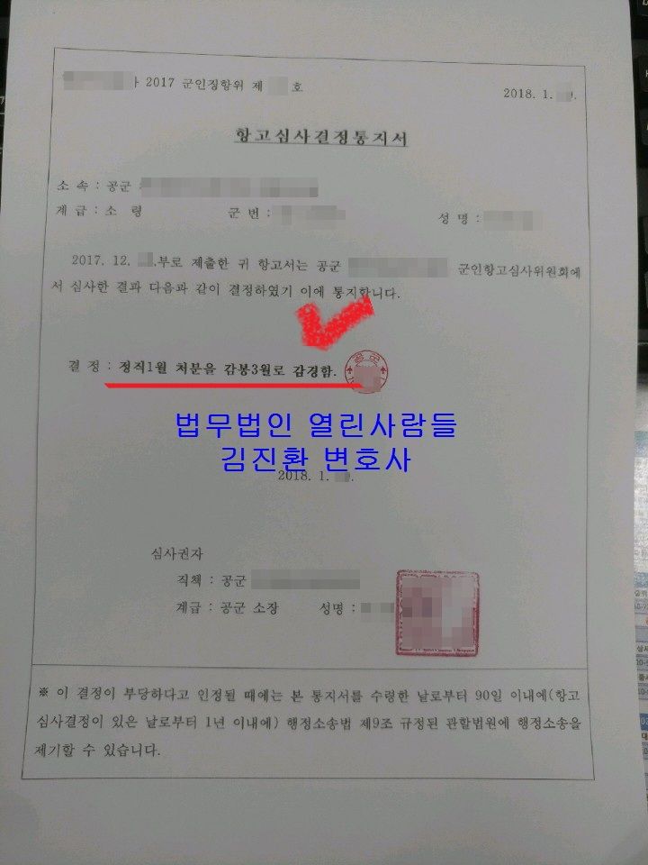 그리하여 징계항고를 한 의뢰인은 감경에 대한 기대를 많이 버린 상태였습니다. 왜냐하면 군인들의 성향상 징계양정기준을 벗어나는 결정을 하지는 않을 것이라는 생각 때문이었습니다.