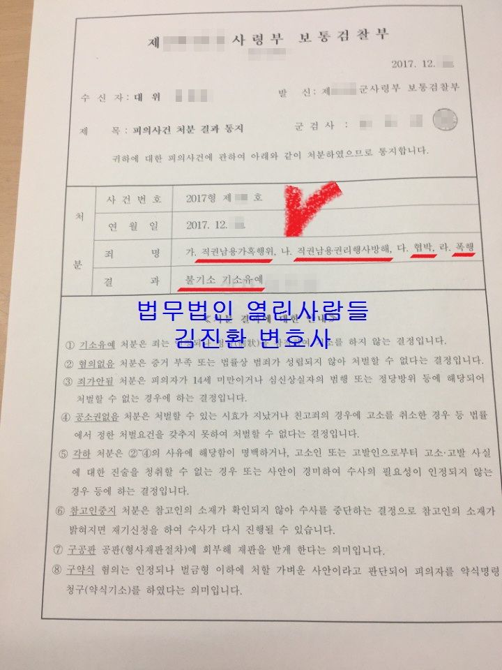 이번 사례는 부하에 대한 직권남용 혐의 등으로 보직해임을 당하고 형사입건까지 되어 의뢰를 맡기신 대위 분의 사례를 소개해 드리겠습니다.