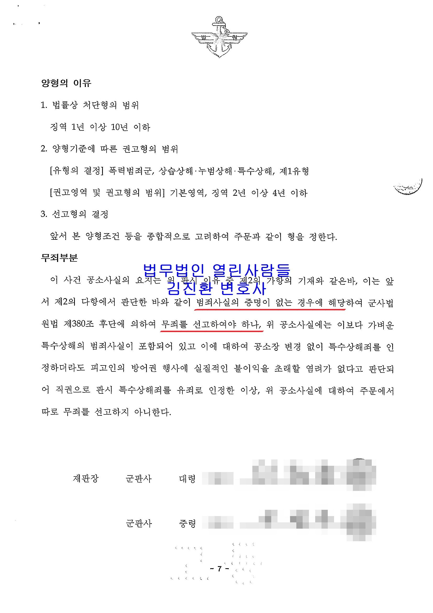 ○ 고등군사법원 판결 : 징역 2년에 집행유예기간 3년