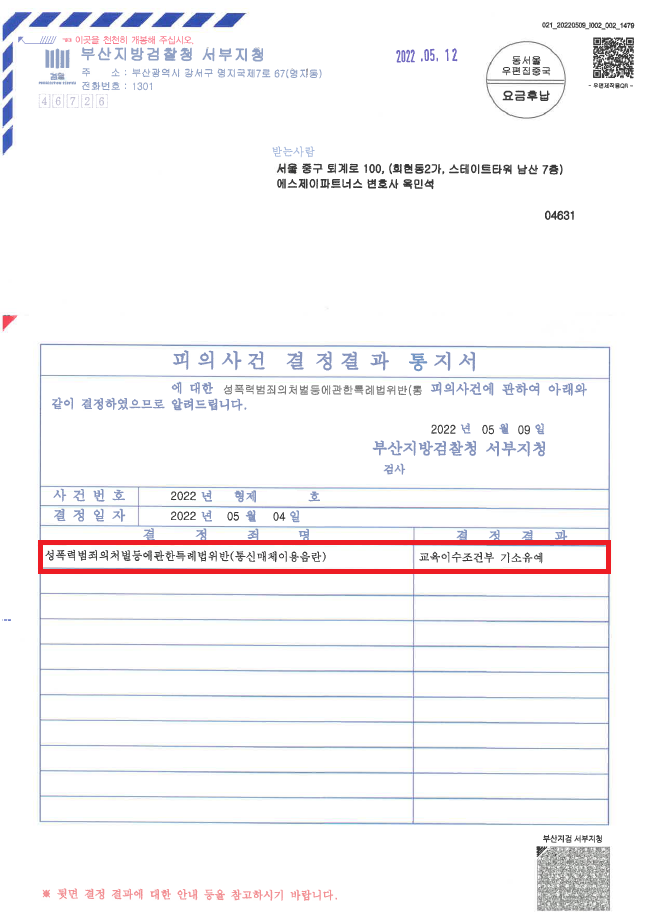 이러한 저의 조력을 바탕으로 A씨는 B씨와 합의하지 않고 혐의를 적극 다투었음에도 불구하고 '기소유예' 처분을 받음으로써 법적 불이익을 최소화하면서 성범죄 전과자가 될 위기에서 벗어날 수 있었습니다.