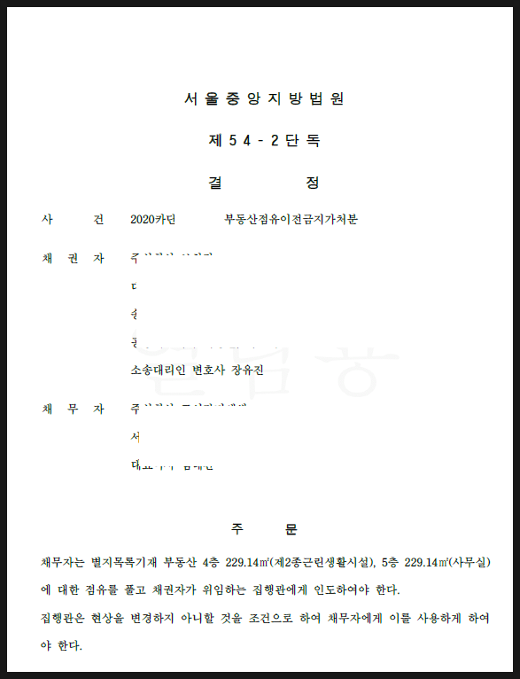 건물 점유 이전금지 가처분의 경우, 건물인도청구를 하였는데 임차인이 점유를 제3자에게 이전할 수 있어 인도 청구에 필수적으로 선행되어야 하는 신청입니다.