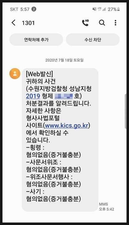 최초에 고소가 진행된 것이 작년 5월이었는데, 1년 3개월 만에 최종 결정이 난 어려운 사건이었습니다.