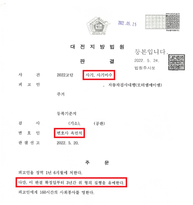 이러한 저의 조력을 바탕으로 A씨는 집행유예를 선고받음으로써 구속 상태에서 벗어나 가족들의 품으로 돌아갈 수 있었습니다.