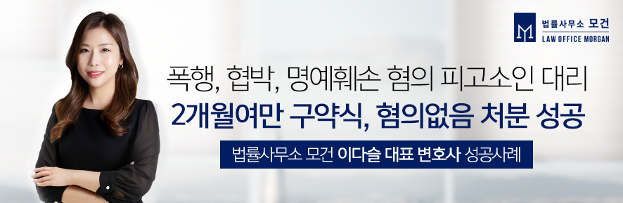 법률사무소 모건의 이다슬 대표 변호사는 대한변호사협회 인증 형사전문변호사로서 폭행, 협박, 명예훼손 등에 풍부한 성공사례를 보유하고 있습니다. 의뢰인을 위해 대표 변호사가 처음부터 끝까지 최선을 다하고 있으니 종로, 광화문, 마포, 혜화 등 상담이 필요하신 분들은 법률사무소 모건으로 문의하세요.