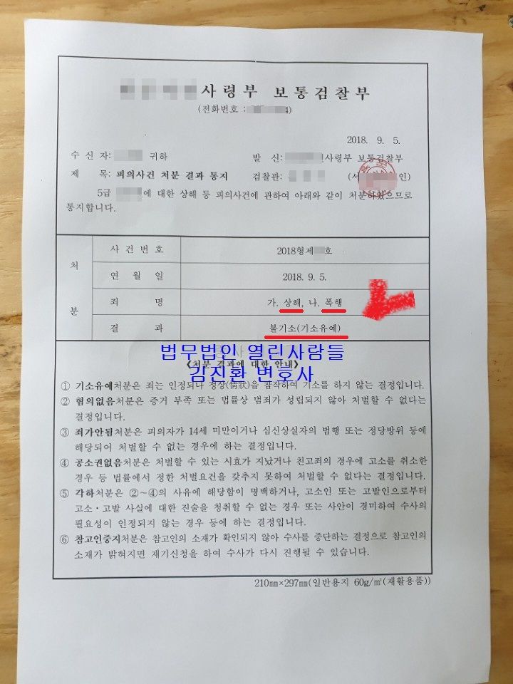 그 결과 군검사님께서 아예 불기소처분을 해 주셔서 벌금이나 집행유예를 받지도 않게 되었습니다.