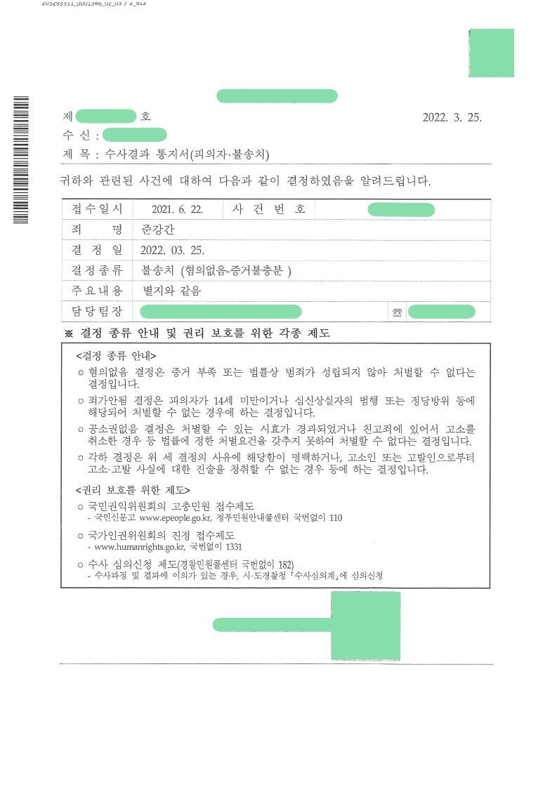그 결과 경찰 단계에서 최종 불송치(혐의없음 - 증거불충분)를 받을 수 있었습니다.