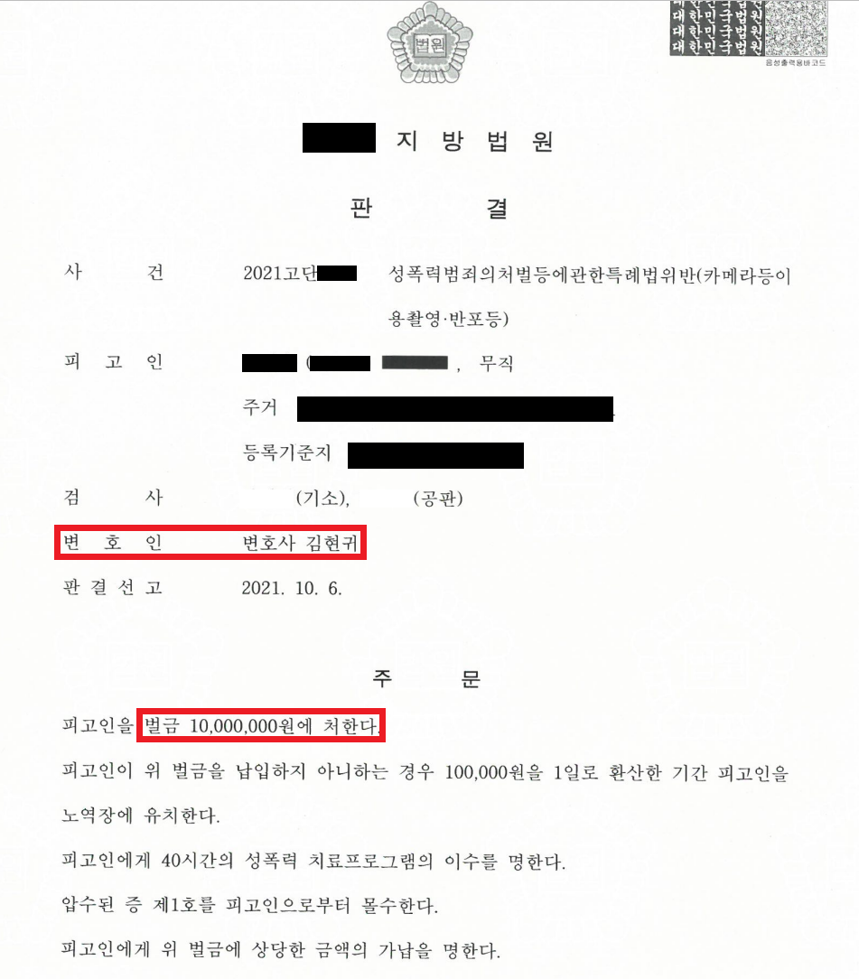 천만다행히도, 재판부는 피해자와 어떠한 합의도 되지 않았고, B와 B의 가족들, 친구들이 A에 대한 엄벌 (=실형) 탄원서를 수 차례 냈음에도, 의견서 내용을 모두 받아들여 A에게 ① 벌금형을 선고하였습니다. ② 그리고 신상정보공개와 고지명령도 면제하였으며 ③ 성범죄임에도 이례적으로 취업제한 명령도 면제해주었습니다.