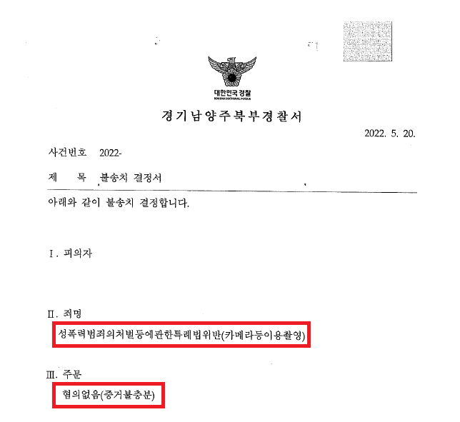 ④ 경찰 조사를 받은 후 "A씨가 B씨와의 성관계 장면을 촬영한 사실은 있으나, B씨의 동의를 받고 촬영한 것이므로, 성폭력범죄의처벌등에관한특례법위반(카메라등이용촬영)죄는 성립하지 않는다"라는 내용의 변호인의견서를 작성하여 제출하였습니다.
