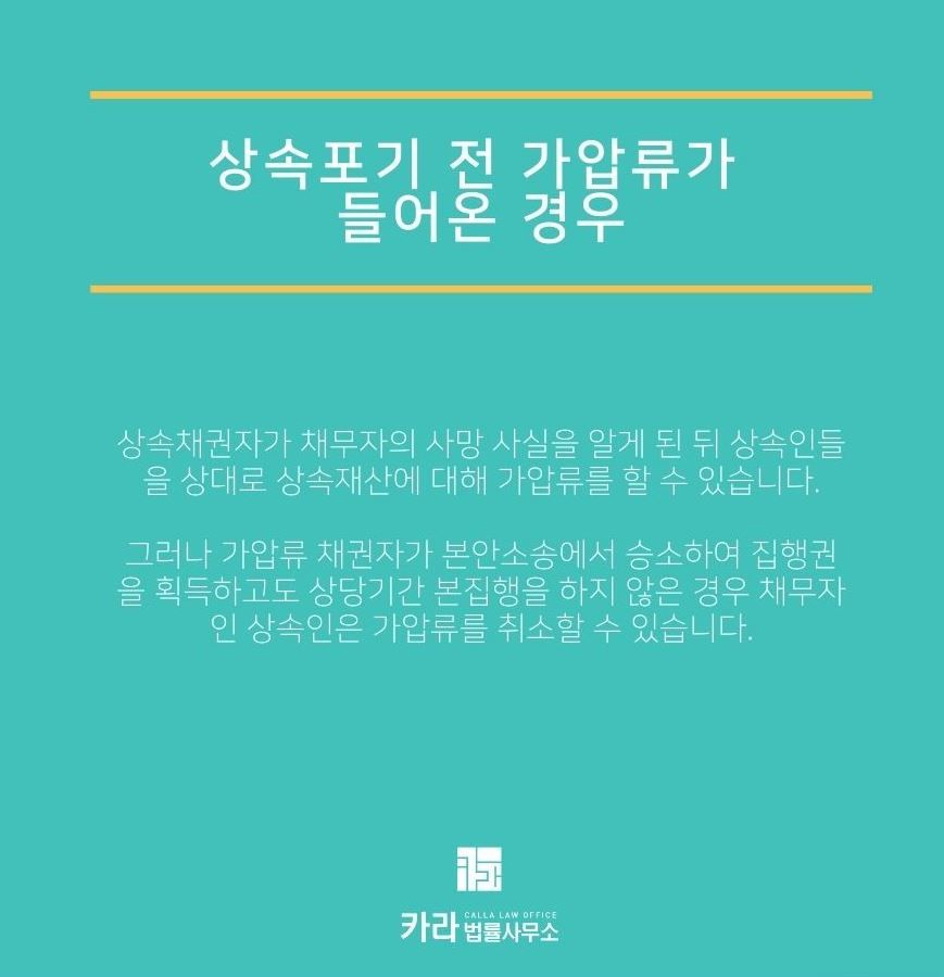 그런데 상속포기 절차를 취하기도 전에 채권자들이 상속재산에 가압류를 걸어두는 경우가 있습니다.