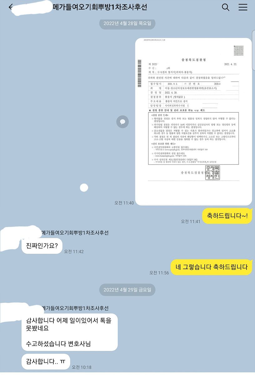 대구지검에서 조사가 이루어진 사건은 보완수사가 내려와 여러 번의 조사 끝에 정말 어렵게 불기소처분을 받을 수 있었습니다. 처분이 오래 걸려 유난히 불안해하는 의뢰인이었는데 오늘 좋은 소식을 전달해줄 수 있었습니다. 오늘 통화하면서 기쁜 목소리를 들으면서 저 역시 좋은 기운을 받은 것 같습니다. 탈퇴와 관련하여 아청물소지도 그렇고 통매음의 경우도 문의가 많습니다. 결론적으로 말하자면 탈퇴하는 것이 여러모로 유리한 점이 많은 경우가 다수 있습니다. 아청물소지와 관련하여서 네이버 이메일로 가입한 경우, 탈퇴한 사람에 대하여는 수사가 이루어지지 않았습니다. 메가클라우드의 경우에도 탈퇴 전에 피의자로 특정이 되었다고 하더라도 뒤늦게라도 탈퇴하였다면 진술 이후 수사기관의 추가 수사와 관련하여 의미있는 차이점이 있기도 합니다. 롤의 경우에는 즉시 탈퇴하면 피의자로 특정되지 않을 수 있다는 말도 널리 퍼져 있는데 즉시 탈퇴하고 사건화된 의뢰인이 없는 것을 보면 어느 정도 신빙성이 있다고 생각됩니다. 아청법위반 성착취물소지죄는 법정형이 과도하게 높고 죄명이 주는 일반인에 대한 인상이 매우 좋지 않으며 신상등록이라는 부가처분이 따라오는 것이므로 수사대상이 되었다면 초기부터 반드시 적절한 변호사의 조력을 받아 일생의 흠을 남기지 않기를 바랍니다.