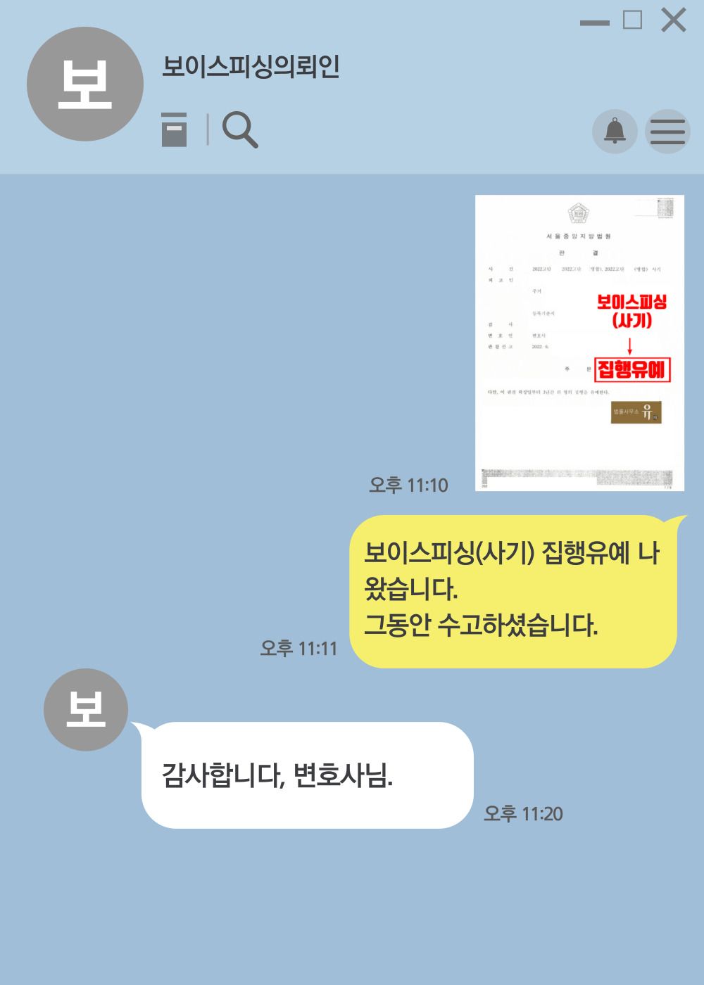 법률사무소 유(唯)의 형사전문변호사는 의뢰인과의 신속한 상담을 통해 사건의 내용 등을 정확히 파악한 후 수차례 경찰조사에 동석하여 의뢰인이 불리한 진술을 하지 않도록 조력하고, 관련 판례와 함께 의뢰인이 보이스피싱이라는 사실을 전혀 인식하지 못한 상태에서 일을 하였다는 점을 강조한 변호인의견서를 양형자료와 함께 제출하는 한편, 합의에 부정적이던 피해자들을 적극적으로 설득하여 피해자 전원과 합리적인 금액으로 합의를 진행하였습니다. 그런데 공판과정에서 검사는 피해금액이 크다는 점, 40여 년간 공직생활 등을 한 의뢰인이 보이스피싱 조직에게 기망당하여 범죄사실을 전혀 인식하지 못하고 범행에 가담했다는 사실이 믿기 어렵다는 점 등을 빌어 의뢰인에 대한 처벌을 강력히 주장하여 자칫 의뢰인에게 실형이 선고될 가능성이 매우 높은 상황이었습니다.