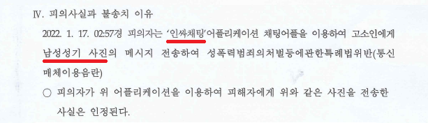 A씨는 2022. 1. 17. 02:57경 여느 때와 마찬가지로 '인싸채팅'을 하던 중, 여성 B씨에게 다짜고짜 성기 사진을 전송하였습니다.