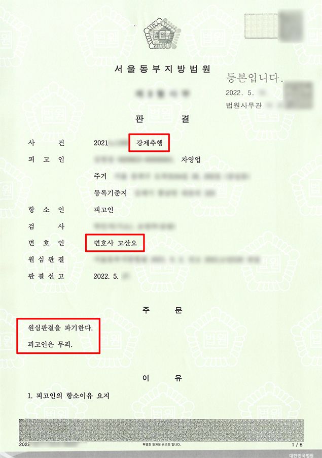성범죄전문변호사의 노련한 주장으로, 의뢰인은 원심 결과를 뒤집고 강제추행 무죄를 선고받을 수 있었습니다.