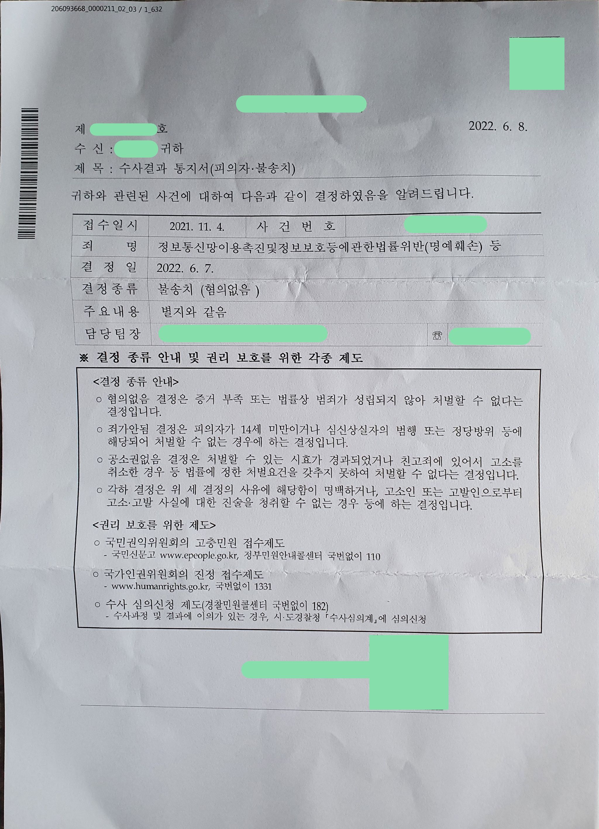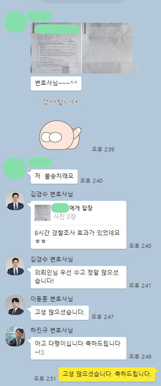 최종 불송치(혐의없음)라는 최선의 결과를 이끌어 낼 수 있었습니다.