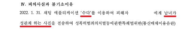 A씨는 2022. 1. 31.경 여느 때와 마찬가지로 '수다'를 하던 중, 여성 B씨에게 다짜고짜 성관계 사진을 전송하였습니다.
