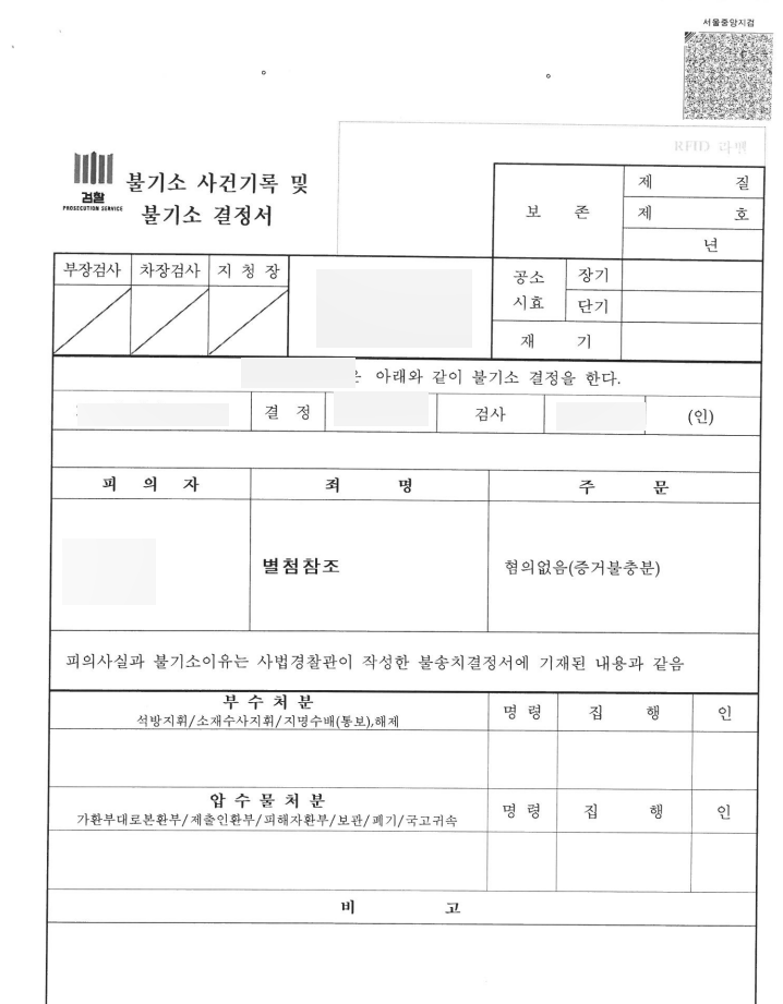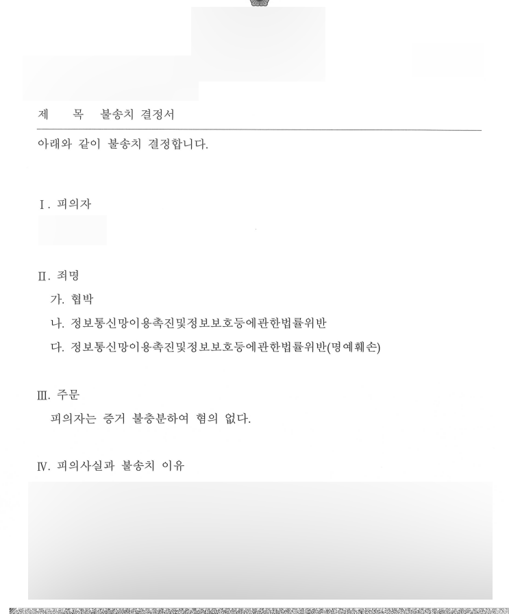 인해 증거가 불충분하여 혐의가 없다고 보았습니다.