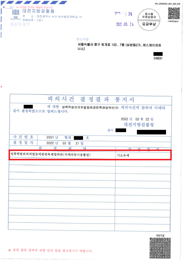 이러한 저의 조력을 바탕으로 A씨는 최근 사회적으로 이슈가 되고 있는 '제2의 N번방' 사건에 연루되었음에도 불구하고 '기소유예' 처분을 받음으로써 성범죄 전과자가 될 위기에서 벗어날 수 있었습니다.