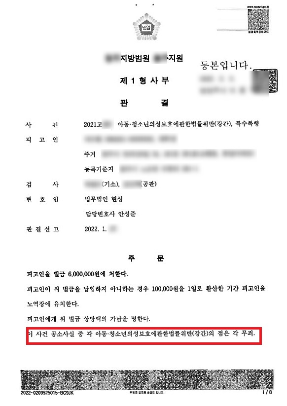 무죄판결을 받은 사례를 소개하고자 합니다.