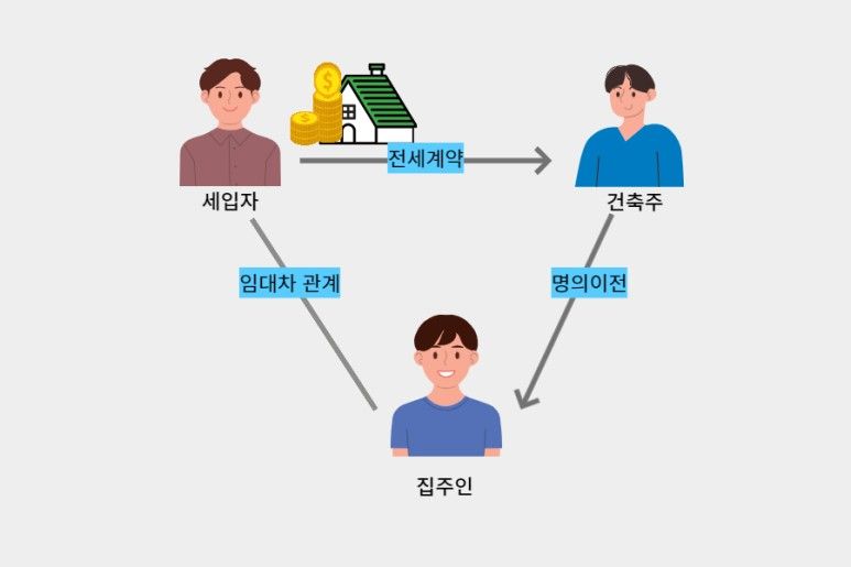 특히 전세사기는 시세 확인이 쉽지 않은 빌라에서 주로 이루어지는데 수법은 이렇습니다. 건축주가 건물을 짓고 분양을 하면서 분양가와 동일하게 또는 더 비싸게 전세매물을 내놓습니다. 그리고 세입자가 건축주와 전세계약을 하면 건축주는 전세보증금을 받은 후 일명 바지집주인에게 소유권을 이전합니다.