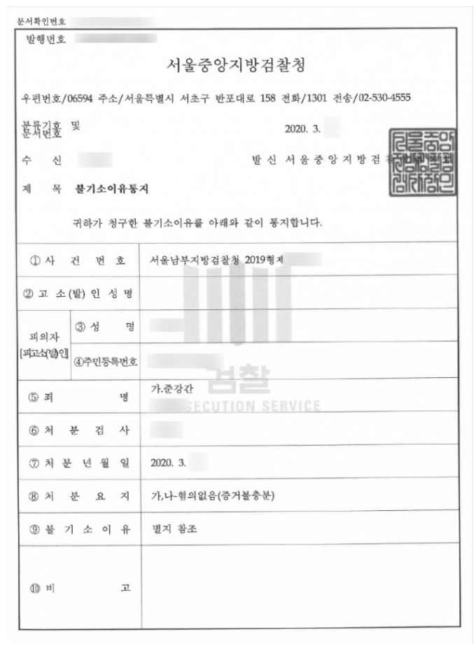 의뢰인은 이미 혼인을 한 유부남인 상태였고, 본 사건으로 조사를 받는 사실이 가족에게 알려지면 안되었기에, 긴급하게 수사기관에 송달장소변경신청을 하여 가족에게는 비밀리에 사건을 진행하였습니다.