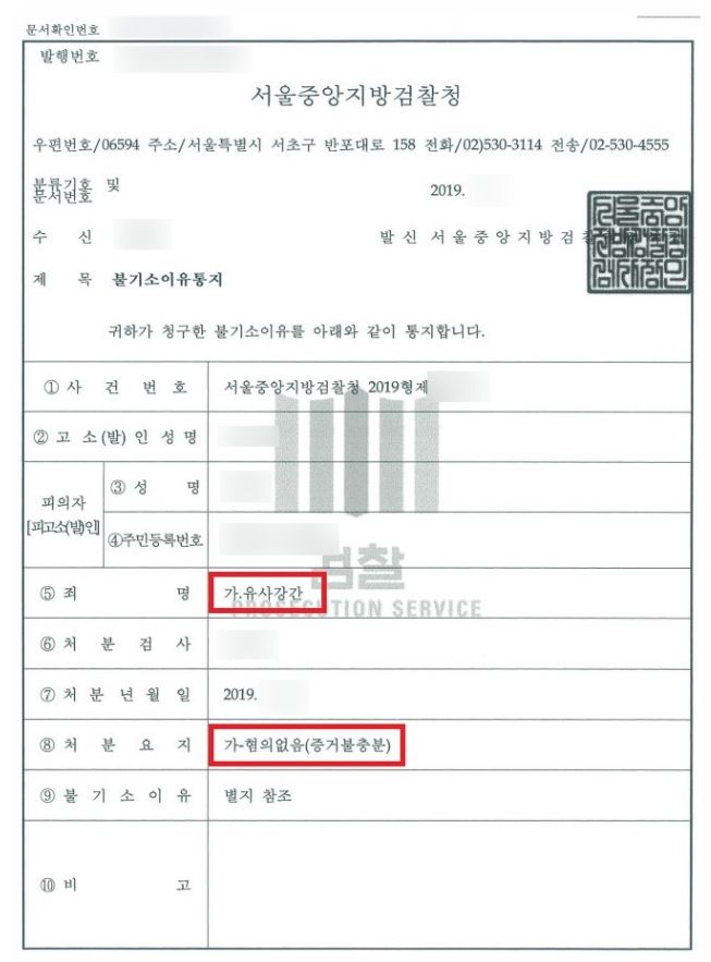 결국 검찰은 변호인 의견서의 내용을 전면적으로 인정해주었고, 의뢰인의 유사강간 혐의는 무혐의 처분을 받게 되었습니다.