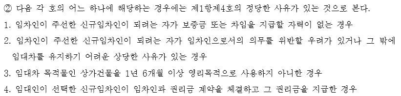 임대인 입장에서는 이 시점에 신규임차인의 정보를 정확히 확인하고, 신규임차인과의 계약을 거절할 '정당한 사유'가 있음을 정확하게 표시하여야 할 것입니다.