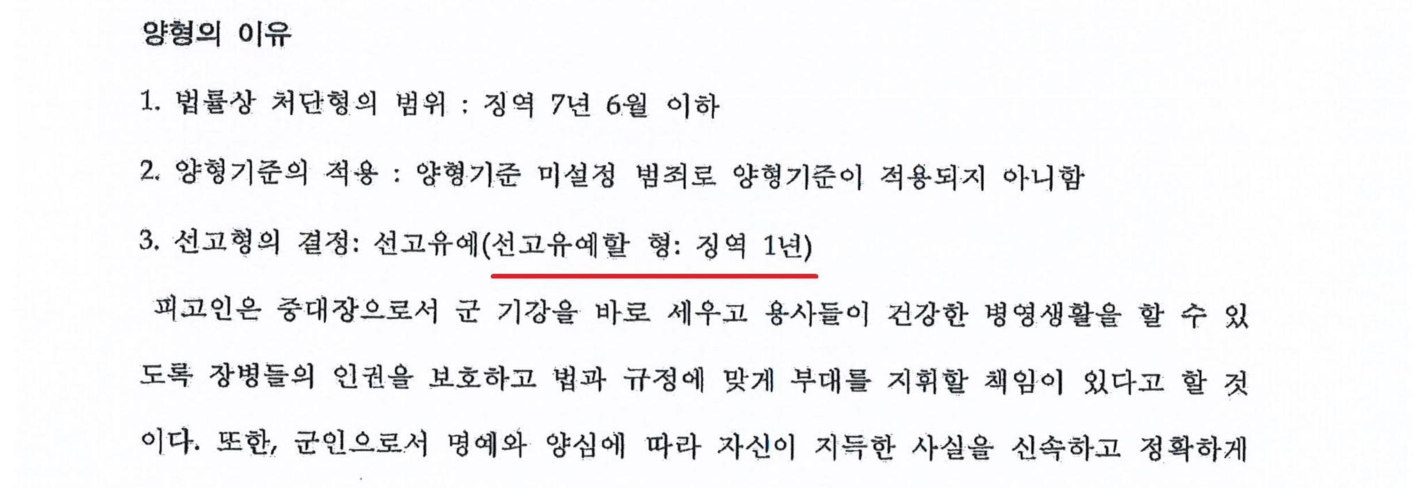 재판에서는 중대장 자신의 사익을 위해 이러한 행위를 한 것이 아니라 중대와 지휘관 그리고 관련 병사들의 형사처벌 등을 필하기 위해 잘못된 행위를 하게 되었다는 점, 수사 초기부터 잘못을 인정하고 누구에게도 잘못을 떠넘기거나 책임을 회피하려 하지 않은 점, 초범이고 지금까지 성실히 군생활을 해온 점 등을 어필하였습니다.
