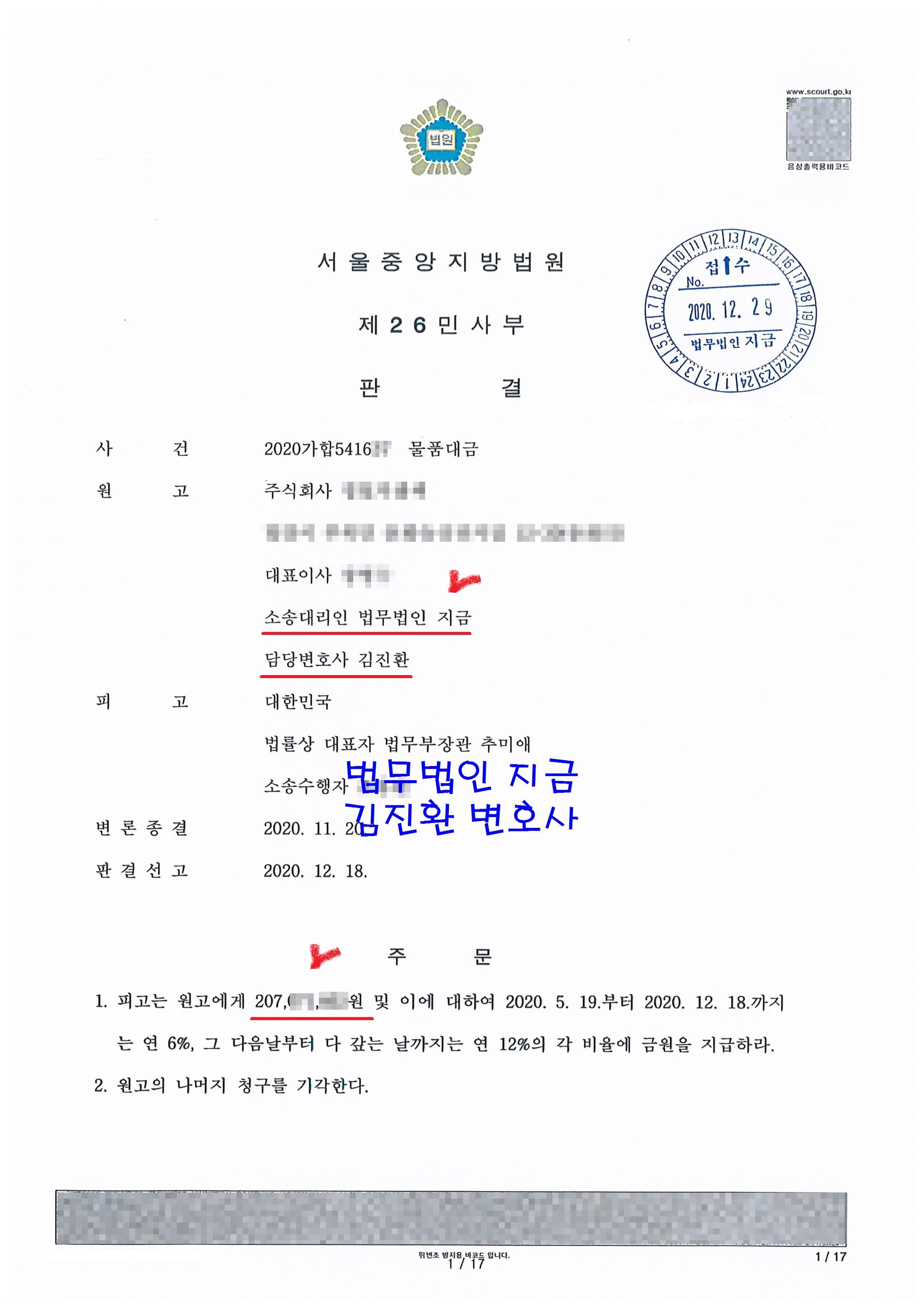 결국 의뢰 업체는 약 5억 가까운 지체상금에서 4억 정도의 감액을 구하는 소송을 제기하였고 소송 결과 2억이 넘는 물품대금을 받을 수 있게 되었는데요 일부승소가 아니라 사실 받을 수 있는 최대한의 결과를 받은 것이라 볼 수 있었습니다.