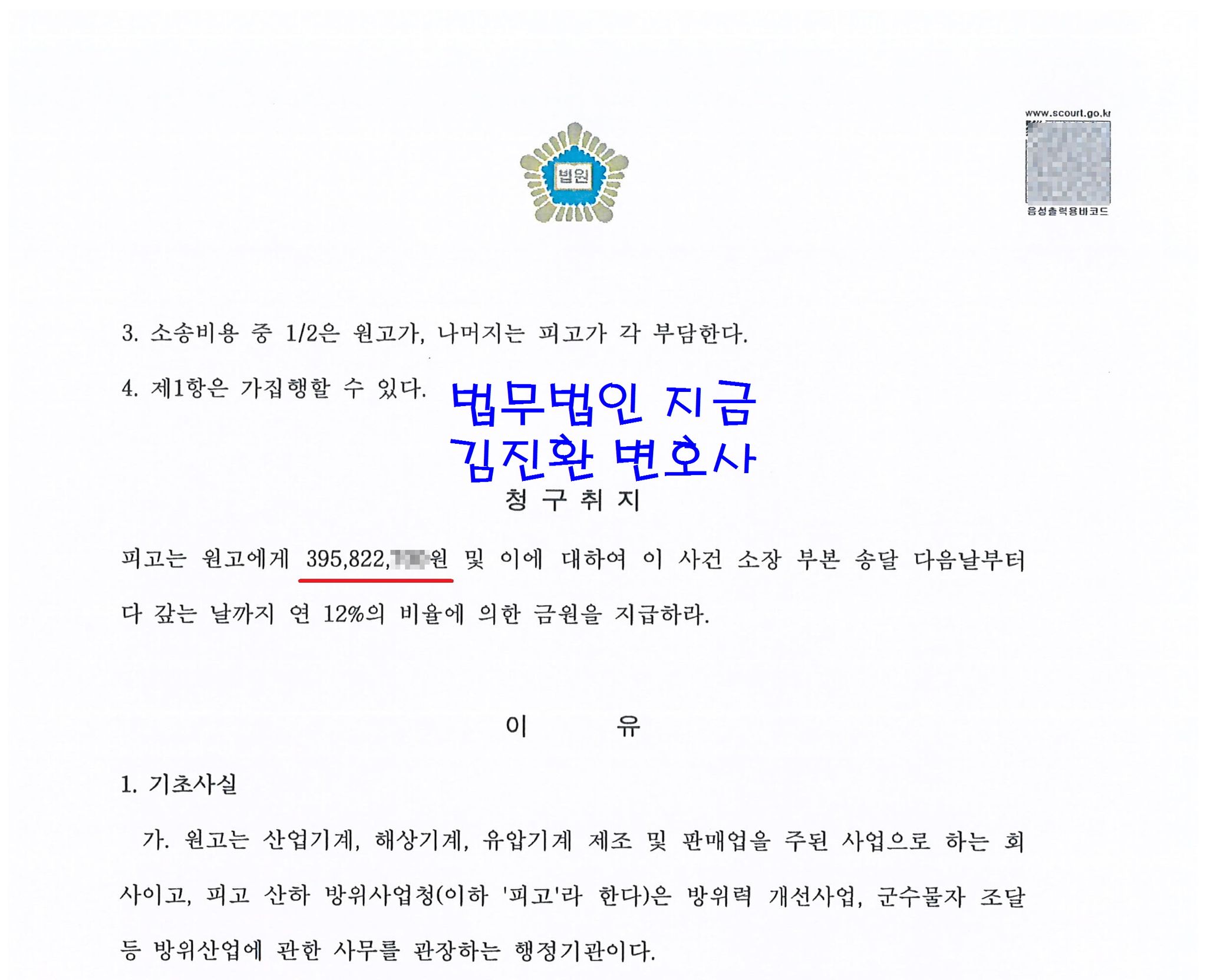 이번 성공사례에서는 지체상금을 이유로 방위사업청으로부터 받지 못한 물품대금을 일부 돌려받은 경우를 말씀드리려고 합니다.