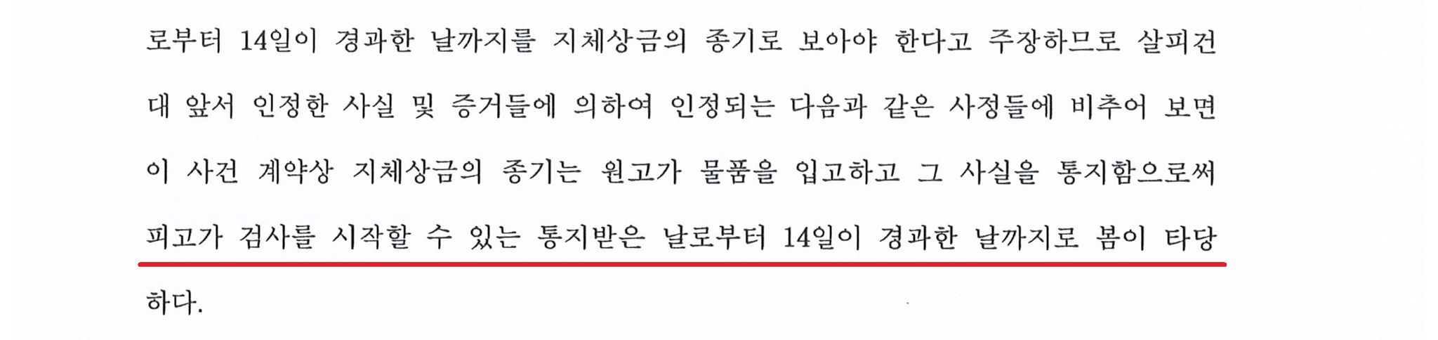 이러한 검사일수 14일 도과는 납품기한 내이든 아니면 납품기한이 지난 후이든 상관없이 14일이 적용되어야 한다고 주장하였는데요