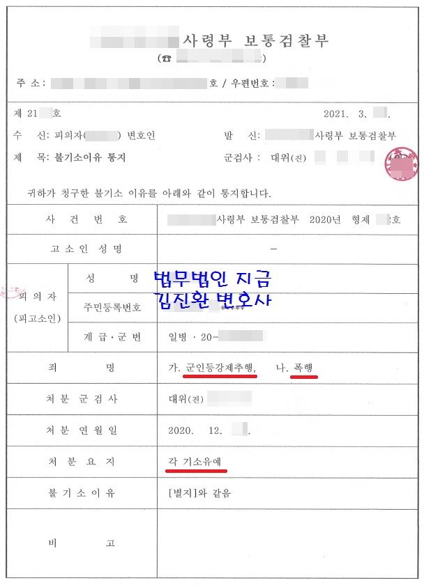 그리고 군검사님의 처분을 기다리게 되었는데요 다행히도 저희가 원하던 전부 기소유예 처분이 내려졌습니다.