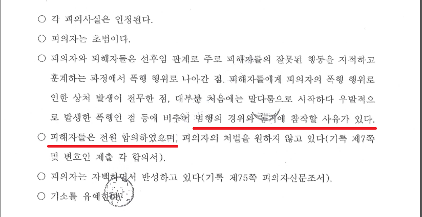 또한 피해자들인 후임병들이 피의자의 처벌을 끝까지 바란다면 아무래도 재판에 회부될 가능성이 높아서 피해자들과의 합의가 필수적인 상황이었습니다.