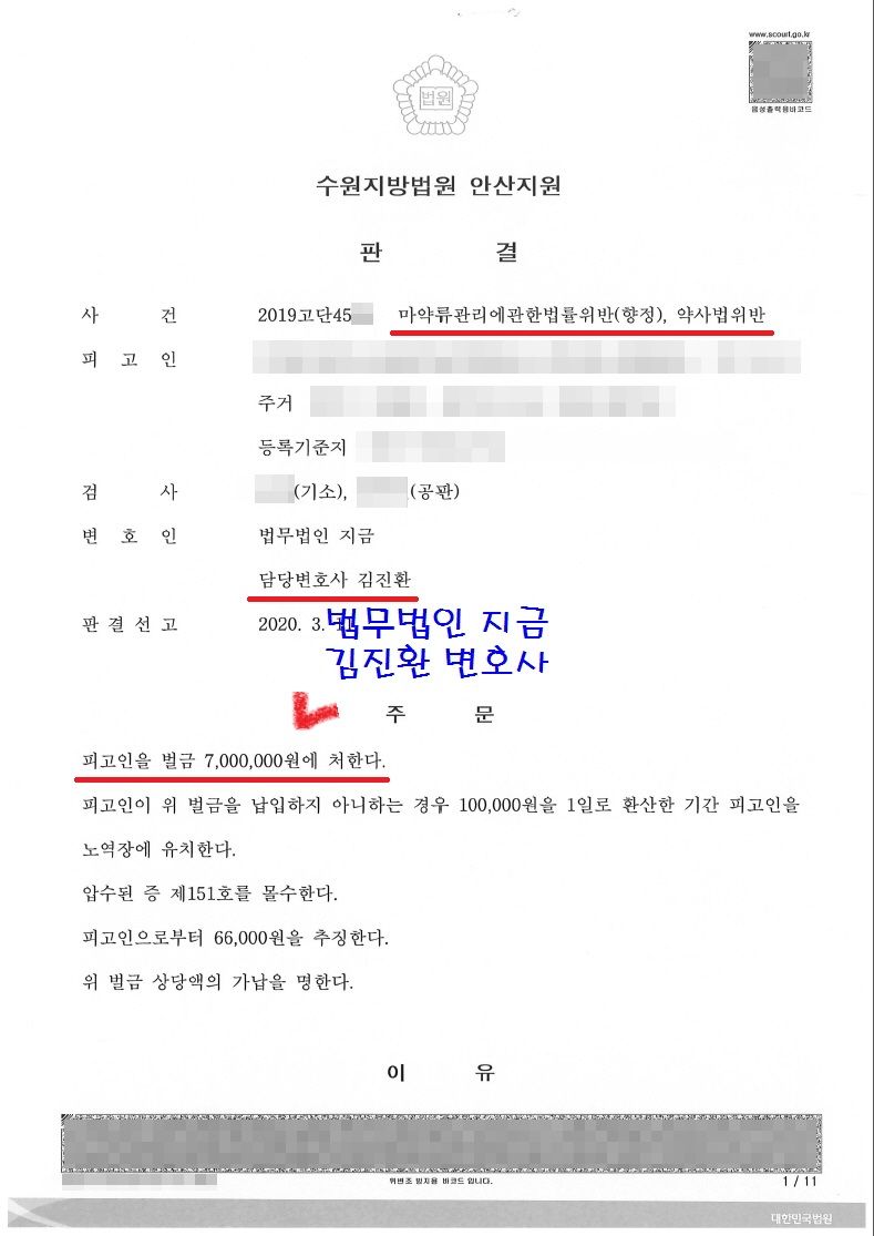 이번에 소개해드릴 성공사례는 자신이 운영하는 마트에서 향정신성의약품 성분이 포함된 전문의약품을 판매하다가 적발되어 조사를 받고 재판까지 가게 된 여성 분의 사례인데요