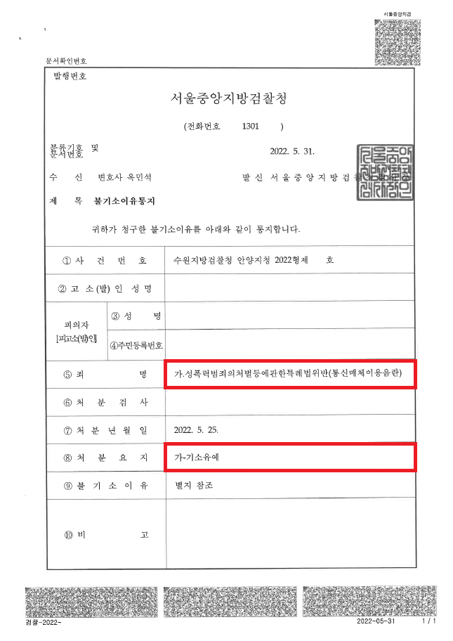때문에 저는 기소유예 처분도 상당히 불만족스러운데요. 그러나 의뢰인께서는 합의하지 않고도 아무 조건도 없는 기소유예 처분을 받았다는 사실만으로 크게 만족하고 계셔서 성공사례로 업로드하게 되었습니다.