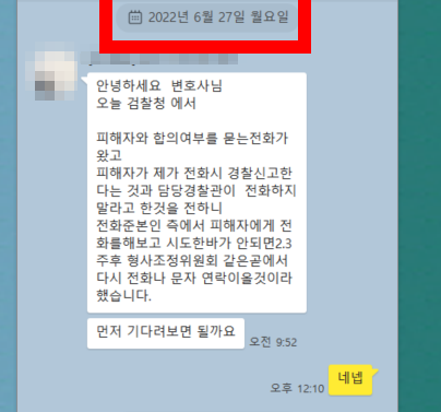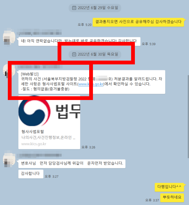 이후, 검사님께서 감사하게도 무혐의로 진행해주셨습니다.