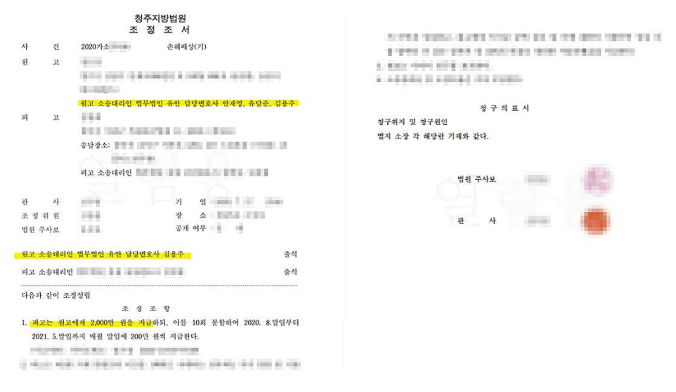 이와 같은 과정을 통해 재판부에서도 이 사건의 진상을 정확하게 파악할 수 있었고 상대방 역시 의뢰인에게 직접 사과하며 반성하는 태도를 보였습니다. 그리고 의뢰인은 결국 2,000만 원의 위자료를 인정받을 수 있었습니다.