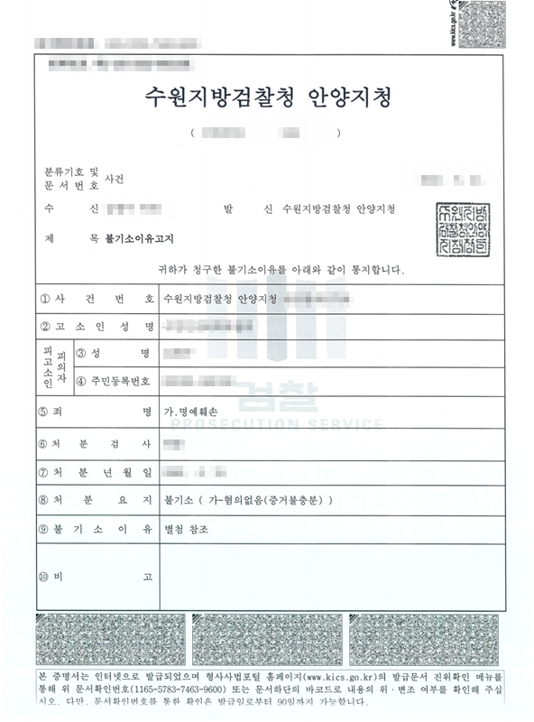 이에 변호사는 의뢰인의 행위는 공연성이 없으며, 또한 공익성이 있다는 취지로 주장하였습니다. 그리고 주장사실을 뒷받침하는 증거로 첨부하여 의견서를 제출하는 등 의뢰인의 입장을 정리하여 강하게 피력하였습니다.